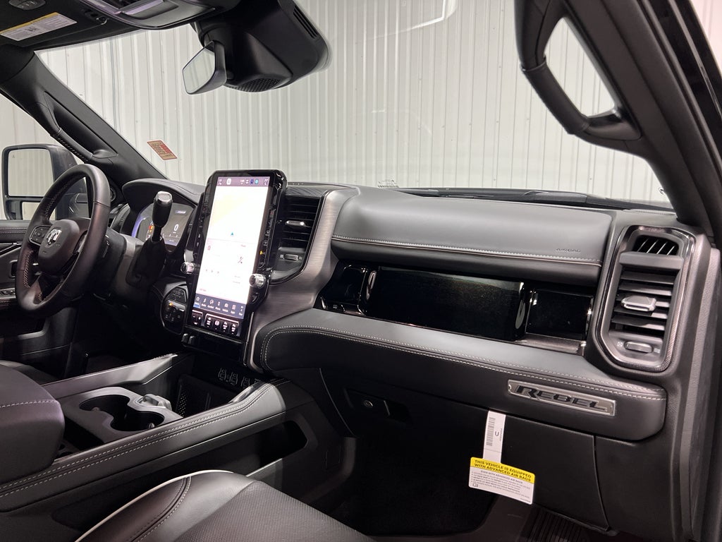 Quick Order Package 24R Rebel. Rebel Level 2 Equipment Group: Google Android Auto; SiriusXM Radio Service; Center Stop Lamp with Cargo View Camera; Front Passenger Interactive Display; Integrated Voice Command with Bluetooth®; LED Bed Lighting; Connectivity - US/Canada; Emergency Vehicle Alert System (EVAS); Power Deployable Running Boards; GPS Navigation; 4G LTE Wi-Fi Hot Spot; GPS Antenna Input; SiriusXM with 360L; Global Telematics Box Module; Leather Wrapped Grab Handle; Connected Travel and Traffic Services; MOPAR Deployable Bed Step; Alexa Built-In; Apple CarPlay; Off-Road Info Pages; Selectable Tire Fill Alert; Trailer Tow Pages; Disassociated Touchscreen Display; HD Radio; 14.4" Touchscreen Display; Uconnect 5 Nav with 14.4" Display; Leather Wrapped Shift Control; MOPAR Spray in Bedliner; 17 Speaker Harman/kardon Premium Sound; Luxury Door Trim Panel; Aluminum Litho Instrument Panel Bezels with Black Trim; Leather Trimmed Bucket Seats (NL). Power Sunroof. 5th Wheel/gooseneck Towing Prep Group. Center Stop Lamp with Cargo View Camera. Diamond Black Crystal PC. MOPAR Front and Rear Rubber Floor Mats. **Equipment listed is based on original vehicle build and subject to change. Please confirm the accuracy of the included equipment by calling the dealer prior to purchase.**Quick Order Package 24R Rebel. Rebel Level 2 Equipment Group: Google Android Auto; SiriusXM Radio Service; Center Stop Lamp with Cargo View Camera; Front Passenger Interactive Display; Integrated Voice Command with Bluetooth®; LED Bed Lighting; Connectivity - US/Canada; Emergency Vehicle Alert System (EVAS); Power Deployable Running Boards; GPS Navigation; 4G LTE Wi-Fi Hot Spot; GPS Antenna Input; SiriusXM with 360L; Global Telematics Box Module; Leather Wrapped Grab Handle; Connected Travel and Traffic Services; MOPAR Deployable Bed Step; Alexa Built-In; Apple CarPlay; Off-Road Info Pages; Selectable Tire Fill Alert; Trailer Tow Pages; Disassociated Touchscreen Display; HD Radio; 14.4" Touchscreen Display; Uconnect 5 Nav with 14.4" Display; Leather Wrapped Shift Control; MOPAR Spray in Bedliner; 17 Speaker Harman/kardon Premium Sound; Luxury Door Trim Panel; Aluminum Litho Instrument Panel Bezels with Black Trim; Leather Trimmed Bucket Seats (NL). Power Sunroof. 5th Wheel/gooseneck Towing Prep Group. Center Stop Lamp with Cargo View Camera. Diamond Black Crystal PC. MOPAR Front and Rear Rubber Floor Mats. **Equipment listed is based on original vehicle build and subject to change. Please confirm the accuracy of the included equipment by calling the dealer prior to purchase.**