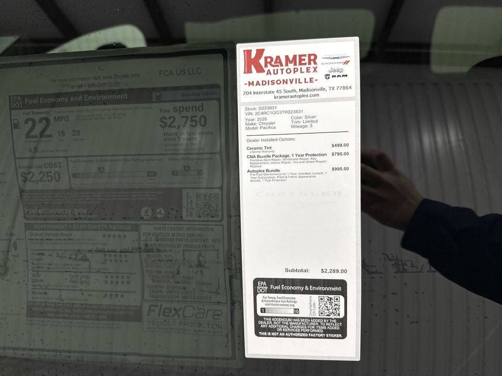 Discover exceptional value with this 2026 Chrysler Pacifica Limited, now available in Madisonville, TX — the best-priced Chrysler Pacifica in the area. This premium family van combines a responsive 3.6L V6 gasoline engine with front-wheel drive for confident performance, smooth handling, and excellent highway cruising. Finished with refined leather seats and thoughtful luxury touches throughout the cabin, the Limited trim delivers comfort for every passenger and long road trips. Safety and convenience are front and center: adaptive cruise control makes highway driving effortless, lane departure warning helps keep you safely in your lane, and a back-up camera simplifies parking and tight maneuvers. Hands-free Bluetooth® lets you stay connected on the go with clear, safe call and audio streaming. Practical storage, versatile seating configurations, and modern infotainment ensure this Chrysler Pacifica meets the needs of busy families, commuters, and weekend adventurers alike. Located in Madisonville, TX, this 2026 Chrysler Pacifica Limited is priced to move — offering top-tier features without the premium cost. Whether you're upgrading your family vehicle or seeking a luxurious, dependable minivan, this Chrysler Pacifica delivers exceptional comfort, advanced safety technologies, and a powerful V6 under the hood. Schedule a test drive today and see why this Chrysler Pacifica Limited is the best-priced choice in Madisonville, TX for buyers who want value, style, and performance.