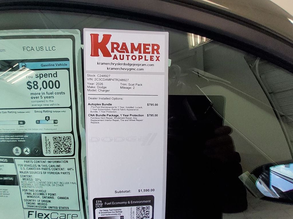 Never get into a cold vehicle again with the remote start feature on the vehicle. This large car's Forward Collision Warning feature alerts drivers to potential front-end collisions. This unit has auto-adjust speed for safe following. Protect this model from unwanted accidents with a cutting edge backup camera system. This large car offers Android Auto for seamless smartphone integration. The installed navigation system will keep you on the right path. Keep your hands warm all winter with a heated steering wheel in the Dodge Charger . This unit features a hands-free Bluetooth® phone system. Apple CarPlay: Seamless smartphone integration for this vehicle - stay connected and entertained on the go! This large car is equipped with all wheel drive. This 2026 Dodge Charger has a 6 Cyl, 3.0L high output engine. With the keyless entry system on this unit you can pop the trunk without dropping your bags from the store.