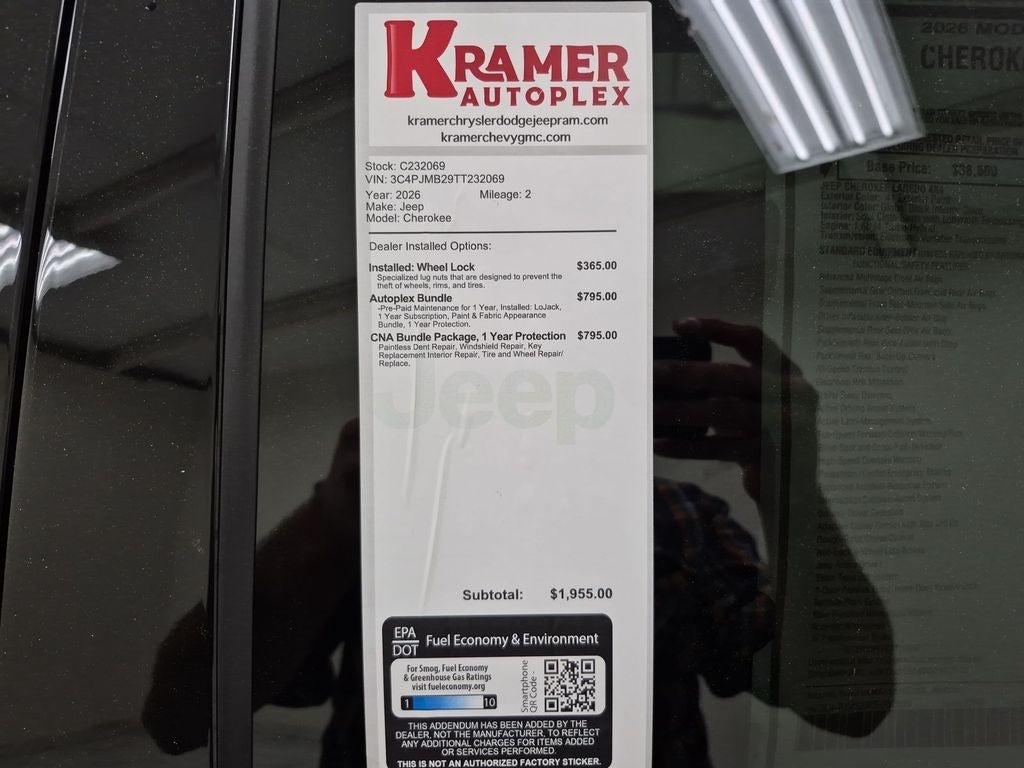 Protect the vehicle from unwanted accidents with a cutting edge backup camera system. The Jeep Cherokee keeps you comfortable with Auto Climate. This 2026 Jeep Cherokee offers Apple CarPlay for seamless connectivity. This unit features a hands-free Bluetooth® phone system. Never get into a cold vehicle again with the remote start feature on it. An off-road package is equipped on it. This model's Forward Collision Warning system alerts the driver to potential front-end collisions, enhancing safety. This model comes equipped with Android Auto for seamless smartphone integration on the road. This 2026 Jeep Cherokee has auto-adjust speed for safe following. Set the temperature exactly where you are most comfortable in the Jeep Cherokee. The fan speed and temperature will automatically adjust to maintain your preferred zone climate. The Jeep Cherokee contains elegant lines finished with an exquisite green color. It has four wheel drive capabilities. The Jeep Cherokee has a 4 Cyl, 1.6L high output engine.