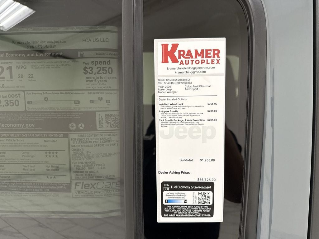 Apple CarPlay: Seamless smartphone integration for this mid-size suv - stay connected and entertained on the go! See what's behind you with the back up camera on this model. Start this 2026 Jeep Wrangler from inside with remote start. An off-road package is equipped on this Jeep Wrangler. This 2026 Jeep Wrangler features a hands-free Bluetooth® phone system. This model offers Android Auto for seamless smartphone integration. It has auto-adjust speed for safe following. This unit's Forward Collision Warning system alerts the driver to potential front-end collisions, enhancing safety. This model keeps you comfortable with Auto Climate. Keep your hands warm all winter with a heated steering wheel in the vehicle . The state of the art park assist system will guide you easily into any spot. Set the temperature exactly where you are most comfortable in this unit. The fan speed and temperature will automatically adjust to maintain your preferred zone climate.