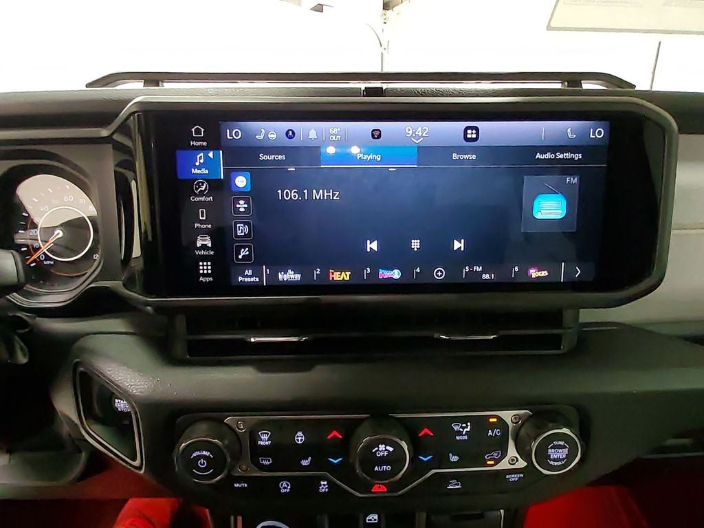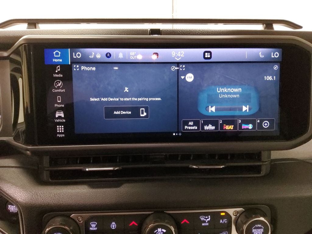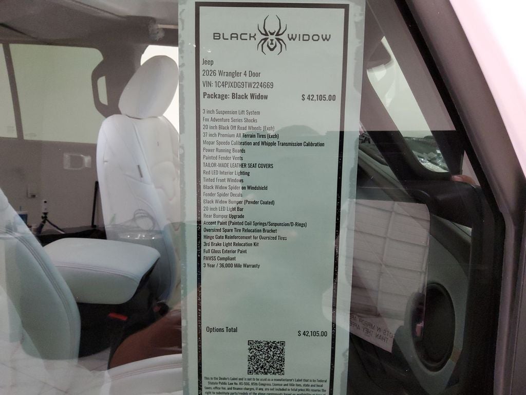 Convenience Group: Emergency/Assistance Call; 2-Door Passive Entry. Front Door Locks; Remote Start System; Cluster 7.0" TFT Color Display; Universal Garage Door Opener; Heated Front Seats; Air Conditioning W/Auto Temp Control; Heated Steering Wheel; Air Filtering. Quick Order Package 24W Willys: 7 & 4 Pin Wiring Harness; Conventional Differential Front Axle; 4-Wheel Drive Swing Gate Decal; Black Grille W/Gloss Black Rings; MOPAR All-Weather Floor Mats; Injection Molded Black Rear Bumper; Dana M210 Wide HD Tube Front Axle; Daytime Running Lamps LED Accents; Front LED Fog Lamps; LED Premium Reflector Headlamps; E-Locker Rear Axle; Corning Gorilla Glass; Security Alarm; 4.10 Rear Axle Ratio; 5. 675 lbs GVWR; Class II Receiver Hitch; Mold In Color Bumper W/Gloss Black; Advanced Brake Assist; Willy's Suspension; LT285/70R17C BSW Mud Terrain Tires; Automatic Headlamps; Deep Tint Sunscreen Windows; Off-Road Plus Mode; 17" X 7.5" Painted Black Wheels; Willys Hood Decal; Full Speed Forward Collision Warning Plus; Rock Protection Sill Rails; Power Heated Mirrors; Enhanced Adaptive Cruise Control; Auxiliary Switches; Dana M220 Wide Rear Axle; Molded in Color Rubicon Highline Flare; Premium Wrapped Steering Wheel; Sun Visors W/Illuminated Vanity Mirrors. Trailer Tow & Aux Switch Group (DISC): Class II Receiver Hitch; 7 & 4 Pin Wiring Harness; Auxiliary Switches. Steel Power Dome Hood Package: Power Dome Dual Vented Hood. Quick Order Package 23W Willys: 7 & 4 Pin Wiring Harness; Conventional Differential Front Axle; 4-Wheel Drive Swing Gate Decal; Black Grille W/Gloss Black Rings; MOPAR All-Weather Floor Mats; Injection Molded Black Rear Bumper; Dana M210 Wide HD Tube Front Axle; Daytime Running Lamps LED Accents; Front LED Fog Lamps; LED Premium Reflector Headlamps; E-Locker Rear Axle; Corning Gorilla Glass; Security Alarm; 4.10 Rear Axle Ratio; 5. 675 lbs GVWR; Class II Receiver Hitch; Mold In Color Bumper W/Gloss Black; Advanced Brake Assist; Willy's Suspension; LT285/70R17C BSW Mud Terrain Tires; Automatic Headlamps; Deep Tint Sunscreen Windows; Off-Road Plus Mode; 17" X 7.5" Painted Black Wheels; Willys Hood Decal; Full Speed Forward Collision Warning Plus; Rock Protection Sill Rails; Power Heated Mirrors; Enhanced Adaptive Cruise Control; Auxiliary Switches; Dana M220 Wide Rear Axle; Molded in Color Rubicon Highline Flare; Premium Wrapped Steering Wheel; Sun Visors W/Illuminated Vanity Mirrors. Black 3-Piece Hard Top. MOPAR Hinge-Gate Reinforcement. Black Clearcoat. MOPAR Multi-Function Accessory Rail. **Equipment listed is based on original vehicle build and subject to change. Please confirm the accuracy of the included equipment by calling the dealer prior to purchase.**