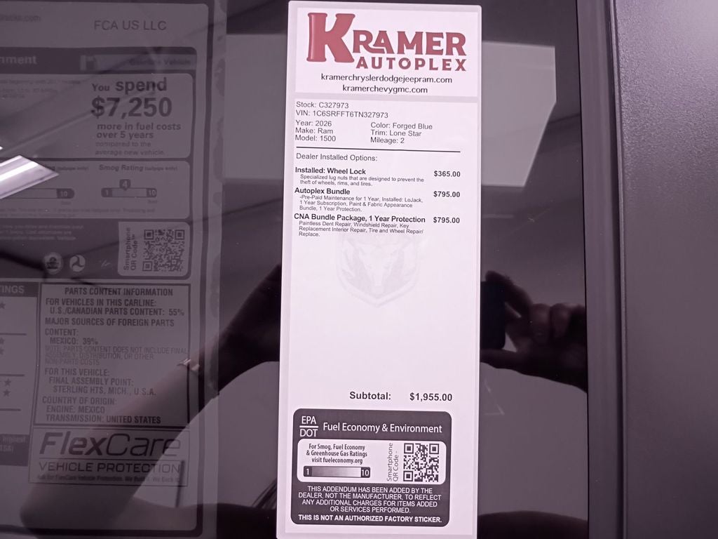 Big Horn Level 2 Equipment Group: Google Android Auto; SiriusXM Radio Service; USB Host Flip; Power Adjustable Pedals; Leather Wrapped Steering Wheel; Integrated Voice Command with Bluetooth®; 12" Touchscreen Display; Glove Box Lamp; Auto Power-Folding Mirrors; 115V Auxiliary Rear Power Outlet; Media Hub with 2 Charge Only USBs; Heated Front Seats; Security Alarm; Black Premium Power Mirrors; Apple CarPlay; Premium Overhead Console; 9 Amplified Speakers with Subwoofer; Disassociated Touchscreen Display; Body Color Fender Flares; Remote Tailgate Release; 115V Auxiliary Power Outlet; LED Dome Lamp with On/off Switch; Universal Garage Door Opener; 2nd Row in Floor Storage Bins; Sun Visors with Illuminated Vanity Mirrors; LED Footwell Lighting; Rear Window Defroster; Integrated Center Stack Radio; Rear View Auto Dim Mirror; Rear Power Sliding Window; Connectivity - US/Canada; GPS Navigation; 4G LTE Wi-Fi Hot Spot; GPS Antenna Input; Overhead LED Lamps; Exterior Mirrors with Heating Element; Auto Dim Exterior Driver Mirror; SiriusXM with 360L; Global Telematics Box Module; Connected Travel and Traffic Services; Heated Steering Wheel; Configurable Drive Mode; 400W Inverter; HD Radio; Deluxe Cloth Bucket Seats; Uconnect 5 Navigation with 12.0" Display Radio; Exterior Mirrors with Supplemental Signals; Steering Wheel Mounted Audio Controls; Exterior Mirrors Courtesy Lamps; Air Conditioning ATC with Dual Zone Control; Cluster 7.0" TFT Color Display; Convex Wide-Angle Exterior Mirror Insert. Quick Order Package 27R Lone Star: Lone Star Badge. Night Edition: 275/55R20 OWL All Season Tires; Accent Color Premium Power Mirrors; Exterior Mirrors with Supplemental Signals; Black Headlamp Bezels; Exterior Mirrors Courtesy Lamps; Grille Black Surround Black Mesh; Auto Power-Folding Mirrors; Exterior Mirrors with Heating Element; 20" X 9.0" Aluminum Painted Clad Wheels; Auto Dim Exterior Driver Mirror; Black Exterior Truck Badging; Anti-Spin Differential Rear Axle; Accent Color Door Handles; Accent Color Tailgate Handle; Black Interior Accents; Dual Exhaust with Black Tips; Body Color Front Bumper; Convex Wide-Angle Exterior Mirror Insert; Body Color Rear Bumper with Step Pads; Black Tail Lamp Bezels; RAM Grille Badge - Black; Black Painted Exterior Mirrors Caps. Protection Group: Steering Gear Skid Plate; Tow Hooks; Transfer Case Skid Plate; Fuel Tank Skid Plate. Quick Order Package 23R Lone Star: Lone Star Badge. 9 Amplified Speakers with Subwoofer. MOPAR Black Tubular Side Steps. Anti-Spin Differential Rear Axle. 33 Gallon Fuel Tank. Trailer Brake Control. Forged Blue Metallic. Cluster 12" TFT Color Display. MOPAR Front and Rear Rubber Floor Mats. 3.92 Rear Axle Ratio. Rear Wheelhouse Liners. **Equipment listed is based on original vehicle build and subject to change. Please confirm the accuracy of the included equipment by calling the dealer prior to purchase.**