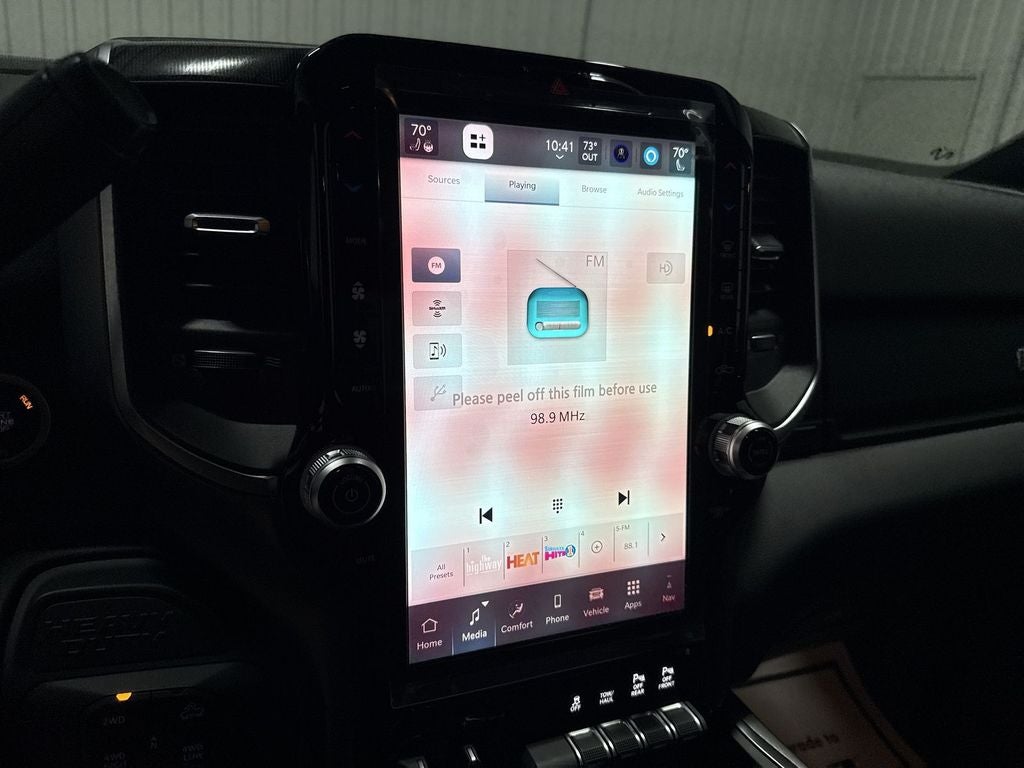 Quick Order Package 2UY Lone Star: Lone Star Badge. Night Edition: Firestone Brand Tires; Gloss Black Nostrils/mic Black Grille; LT285/60R20E OWL On/off Road Tires; Black Exterior Truck Badging; 20" X 8.0" Black Painted Aluminum Wheels; Body Color Grille-Surround; Black Interior Accents; Black Wheel Center Hub; Painted Front Bumper; Painted Rear Bumper. Off Road Package: Front Performance Tuned Shock Absorbers; Transfer Case Skid Plate Shield; Hill Assist; Rear Performance Tuned Shock Absorbers. Big Horn Level 1 Plus Equipment Group: Google Android Auto; SiriusXM Radio Service; For Details. Visit DriveUconnect.com; For More Info. Call 800-643-2112; Integrated Voice Command with Bluetooth®; Emergency Vehicle Alert System (EVAS); Lone Star Instrument Panel Badge; 12" Touchscreen Display; Glove Box Lamp; Auto Power-Folding Mirrors; Footwell Courtesy Lamp; Anti-Spin Differential Rear Axle; Mirror Running Lights; MOPAR Deployable Bed Step; Alexa Built-In; Apple CarPlay; Power-Adjustable Convex Aux Mirrors; Forward and Reverse Utility Lights; Locking Lower Glove Box; Remote Start System; 9 Alpine Speakers with Subwoofer; Disassociated Touchscreen Display; Dual Glove Boxes; 2nd Row in Floor Storage Bins; Rear View Auto Dim Mirror; Rear Dome with On/off Switch Lamp; LED Bed Lighting; Connectivity - US/Canada; GPS Navigation; 4G LTE Wi-Fi Hot Spot; GPS Antenna Input; Exterior Mirrors with Heating Element; SiriusXM with 360L; Global Telematics Box Module; Connected Travel and Traffic Services; Foam Bottle Insert (door Trim Panel); Black Exterior Mirrors; Off-Road Info Pages; Selectable Tire Fill Alert; Trailer Tow Pages; HD Radio; Uconnect 5 Navigation with 12.0" Display Radio; Power Heated Folding Telescopic Mirrors; Exterior Mirrors with Supplemental Signals; Steering Wheel Mounted Audio Controls; Exterior Mirrors Courtesy Lamps; Air Conditioning ATC with Dual Zone Control; MOPAR Spray in Bedliner; Power Adjust Mirrors; Luxury Steering Wheel; Power Telescoping Mirrors. Heated Seats and Wheel Group: Heated Front Seats; Heated Steering Wheel. Painted Flat Wheel-To-wheel Side Steps. 5th Wheel/gooseneck Towing Prep Group. Anti-Spin Differential Rear Axle. Premium Cloth Bucket Seats. Remote Start System. Diamond Black Crystal PC. MOPAR Front and Rear Rubber Floor Mats. Clearance Lamps. Power 2-Way Driver Lumbar Adjust. Transfer Case Skid Plate Shield. **Equipment listed is based on original vehicle build and subject to change. Please confirm the accuracy of the included equipment by calling the dealer prior to purchase.**