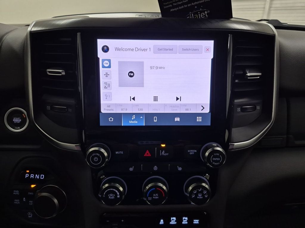 The rear parking assist technology on this Ram 1500 will put you at ease when reversing. The system alerts you as you get closer to an obstruction. It offers Apple CarPlay for seamless connectivity. Never get into a cold vehicle again with the remote start feature on this 1/2 ton pickup. Bluetooth® technology is built into the Ram 1500, keeping your hands on the steering wheel and your focus on the road. See what's behind you with the back up camera on this model. The vehicle is pure luxury with a heated steering wheel. This Ram 1500 is equipped with the latest generation of XM/Sirius Radio. It has satellite radio capabilities. This unit offers Android Auto for seamless smartphone integration. This model has automated speed control that adjusts to maintain a safe following distance, enhancing highway driving convenience. The vehicle's Forward Collision Warning system alerts the driver to potential front-end collisions, enhancing safety.