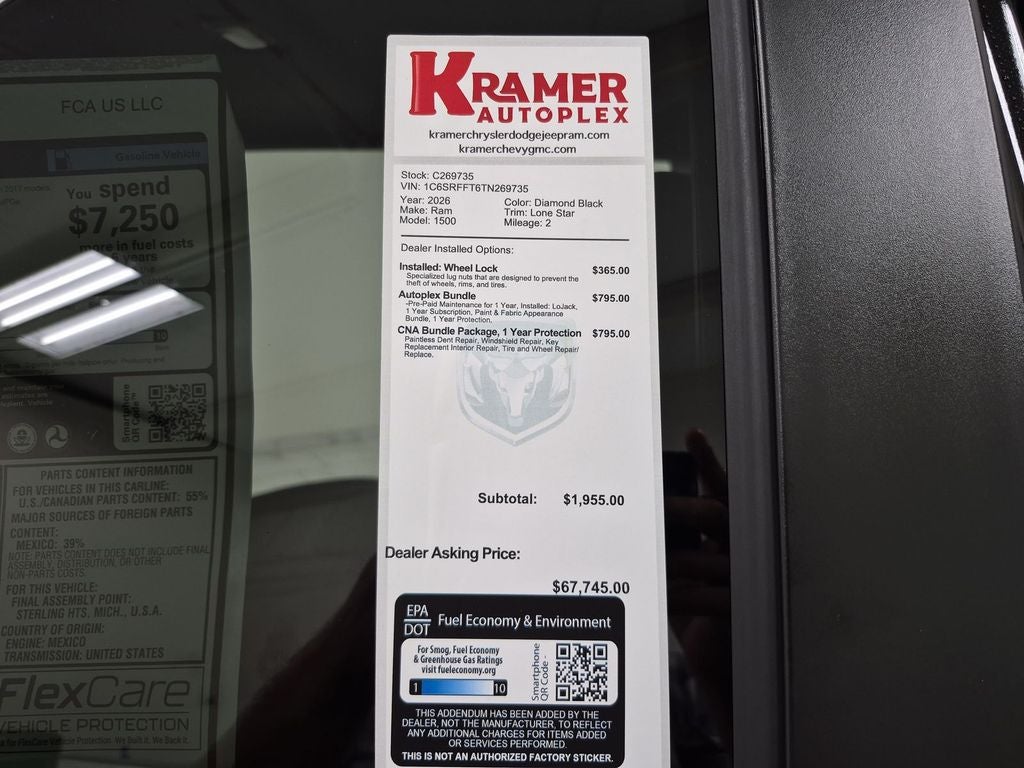 Experience power and comfort with this 2026 Ram 1500 Lone Star 4WD, featuring a robust V8 5.7L gasoline engine—perfect for towing, hauling, and weekend adventures around Livingston, TX. This Lone Star trim delivers the ideal blend of capability and refinement, and it comes equipped with premium features that elevate every drive. Stay connected and entertained with Android Auto and Satellite Radio, while Remote Start and a Heated Steering Wheel add convenience and comfort in any season. Adaptive Cruise Control enhances highway driving confidence with advanced safety and convenience. This truck is competitively priced — the best value in the area — making it an exceptional choice for buyers seeking performance, technology, and style without compromise. Rugged exterior design meets a thoughtfully appointed interior designed for long days on the job or family road trips. Practical amenities and smart tech ensure you get the most from every mile: intuitive infotainment, driver assistance systems, and creature comforts combine to make the Ram 1500 Lone Star a standout in the full-size pickup segment. Located in Livingston, TX, this 2026 Ram 1500 Lone Star 4WD with the V8 5.7L gasoline engine is ready for immediate test drives. Don't miss the opportunity to own a powerful, feature-rich truck at the best price — contact us today to schedule your appointment and experience this impressive Ram 1500 in person.