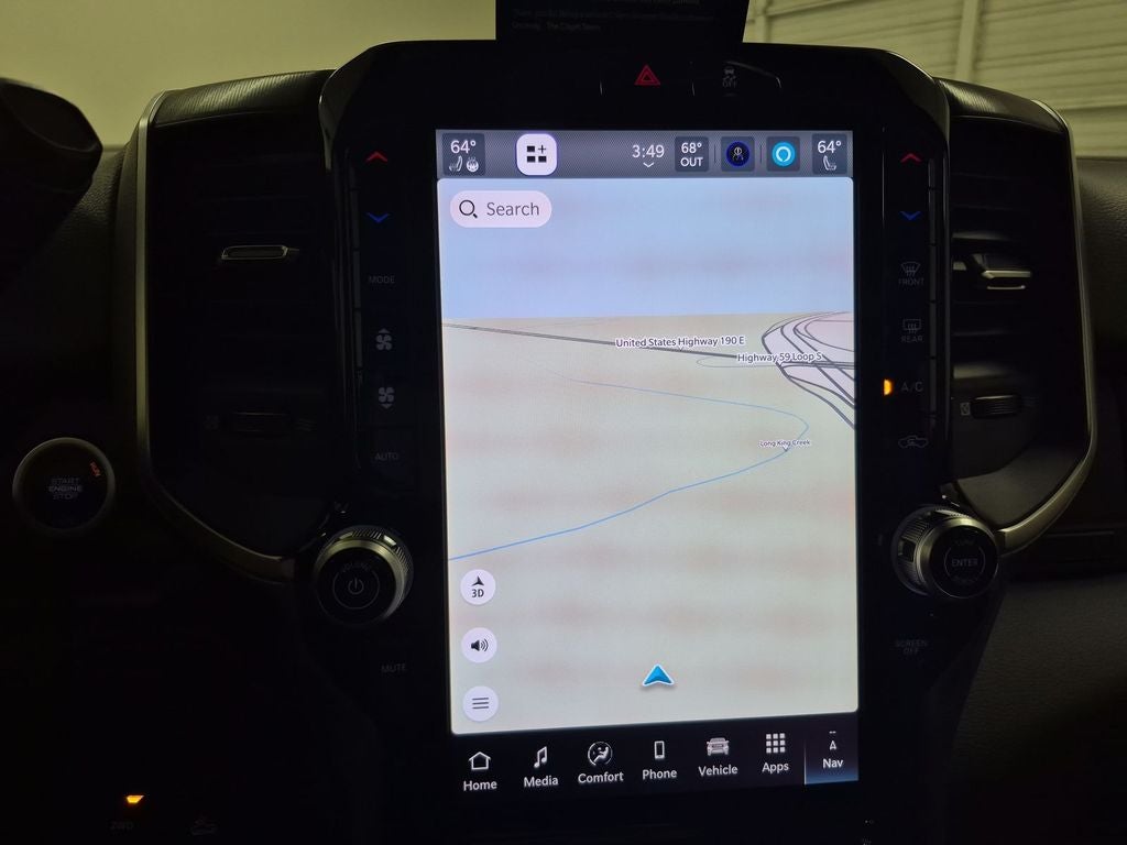 Cold Weather Group: Engine Block Heater; MOPAR Winter Front Grille Cover. Quick Order Package 24Y Lone Star: Lone Star Badge. Night Edition: Firestone Brand Tires; Gloss Black Nostrils/mic Black Grille; LT285/60R20E OWL On/off Road Tires; Black Exterior Truck Badging; 20" X 8.0" Black Painted Aluminum Wheels; Body Color Grille-Surround; Black Interior Accents; Black Wheel Center Hub; Painted Front Bumper; Painted Rear Bumper. Off Road Package: Front Performance Tuned Shock Absorbers; Transfer Case Skid Plate Shield; Hill Assist; Rear Performance Tuned Shock Absorbers. Big Horn Level 1 Plus Equipment Group: Google Android Auto; SiriusXM Radio Service; For Details. Visit DriveUconnect.com; For More Info. Call 800-643-2112; Integrated Voice Command with Bluetooth®; Emergency Vehicle Alert System (EVAS); Lone Star Instrument Panel Badge; 12" Touchscreen Display; Glove Box Lamp; Auto Power-Folding Mirrors; Footwell Courtesy Lamp; Anti-Spin Differential Rear Axle; Mirror Running Lights; MOPAR Deployable Bed Step; Alexa Built-In; Apple CarPlay; Power-Adjustable Convex Aux Mirrors; Forward and Reverse Utility Lights; Locking Lower Glove Box; Remote Start System; 9 Alpine Speakers with Subwoofer; Disassociated Touchscreen Display; Dual Glove Boxes; 2nd Row in Floor Storage Bins; Rear View Auto Dim Mirror; Rear Dome with On/off Switch Lamp; LED Bed Lighting; Connectivity - US/Canada; GPS Navigation; 4G LTE Wi-Fi Hot Spot; GPS Antenna Input; Exterior Mirrors with Heating Element; SiriusXM with 360L; Global Telematics Box Module; Connected Travel and Traffic Services; Foam Bottle Insert (door Trim Panel); Black Exterior Mirrors; Off-Road Info Pages; Selectable Tire Fill Alert; Trailer Tow Pages; HD Radio; Uconnect 5 Navigation with 12.0" Display Radio; Power Heated Folding Telescopic Mirrors; Exterior Mirrors with Supplemental Signals; Steering Wheel Mounted Audio Controls; Exterior Mirrors Courtesy Lamps; Air Conditioning ATC with Dual Zone Control; MOPAR Spray in Bedliner; Power Adjust Mirrors; Luxury Steering Wheel; Power Telescoping Mirrors. Heated Seats and Wheel Group: Heated Front Seats; Heated Steering Wheel. Quick Order Package 2UY Lone Star. 5th Wheel/gooseneck Towing Prep Group. Anti-Spin Differential Rear Axle. Premium Cloth Bucket Seats. Remote Start System. MOPAR Front and Rear Rubber Floor Mats. Rear Wheelhouse Liners. Clearance Lamps. Power 2-Way Driver Lumbar Adjust. Transfer Case Skid Plate Shield. **Equipment listed is based on original vehicle build and subject to change. Please confirm the accuracy of the included equipment by calling the dealer prior to purchase.**