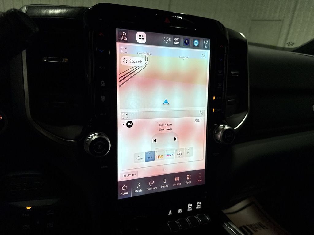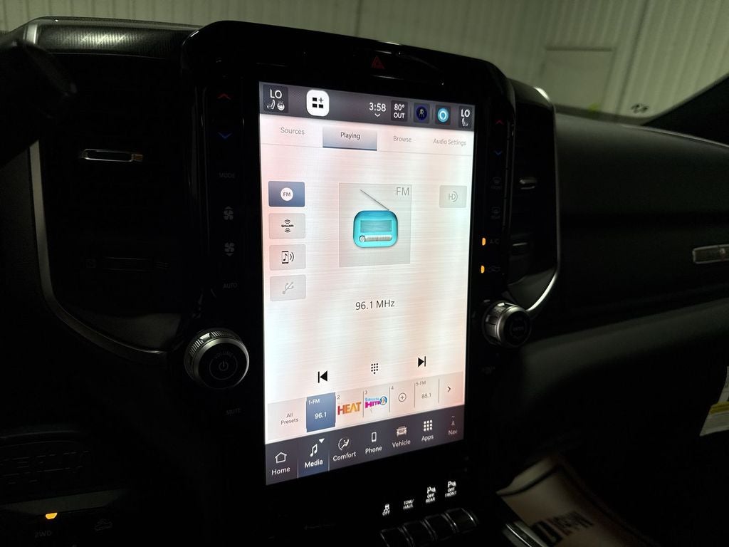 Quick Order Package 2UY Lone Star: Lone Star Badge. Night Edition: Firestone Brand Tires; Gloss Black Nostrils/mic Black Grille; LT285/60R20E OWL On/off Road Tires; Black Exterior Truck Badging; 20" X 8.0" Black Painted Aluminum Wheels; Body Color Grille-Surround; Black Interior Accents; Black Wheel Center Hub; Painted Front Bumper; Painted Rear Bumper. Off Road Package: Front Performance Tuned Shock Absorbers; Transfer Case Skid Plate Shield; Hill Assist; Rear Performance Tuned Shock Absorbers. Big Horn Level 1 Plus Equipment Group: Google Android Auto; SiriusXM Radio Service; For Details. Visit DriveUconnect.com; For More Info. Call 800-643-2112; Integrated Voice Command with Bluetooth®; Emergency Vehicle Alert System (EVAS); Lone Star Instrument Panel Badge; 12" Touchscreen Display; Glove Box Lamp; Auto Power-Folding Mirrors; Footwell Courtesy Lamp; Anti-Spin Differential Rear Axle; Mirror Running Lights; MOPAR Deployable Bed Step; Alexa Built-In; Apple CarPlay; Power-Adjustable Convex Aux Mirrors; Forward and Reverse Utility Lights; Locking Lower Glove Box; Remote Start System; 9 Alpine Speakers with Subwoofer; Disassociated Touchscreen Display; Dual Glove Boxes; 2nd Row in Floor Storage Bins; Rear View Auto Dim Mirror; Rear Dome with On/off Switch Lamp; LED Bed Lighting; Connectivity - US/Canada; GPS Navigation; 4G LTE Wi-Fi Hot Spot; GPS Antenna Input; Exterior Mirrors with Heating Element; SiriusXM with 360L; Global Telematics Box Module; Connected Travel and Traffic Services; Foam Bottle Insert (door Trim Panel); Black Exterior Mirrors; Off-Road Info Pages; Selectable Tire Fill Alert; Trailer Tow Pages; HD Radio; Uconnect 5 Navigation with 12.0" Display Radio; Power Heated Folding Telescopic Mirrors; Exterior Mirrors with Supplemental Signals; Steering Wheel Mounted Audio Controls; Exterior Mirrors Courtesy Lamps; Air Conditioning ATC with Dual Zone Control; MOPAR Spray in Bedliner; Power Adjust Mirrors; Luxury Steering Wheel; Power Telescoping Mirrors. Heated Seats and Wheel Group: Heated Front Seats; Heated Steering Wheel. Painted Flat Wheel-To-wheel Side Steps. 5th Wheel/gooseneck Towing Prep Group. Anti-Spin Differential Rear Axle. Premium Cloth Bucket Seats. Remote Start System. Molten Red Pearlcoat. MOPAR Front and Rear Rubber Floor Mats. Clearance Lamps. Power 2-Way Driver Lumbar Adjust. Transfer Case Skid Plate Shield. **Equipment listed is based on original vehicle build and subject to change. Please confirm the accuracy of the included equipment by calling the dealer prior to purchase.**