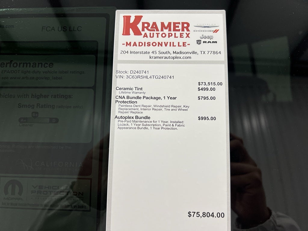Tradesman Level 1 Equipment Group: Google Android Auto; SiriusXM Radio Service; For Details. Visit DriveUconnect.com; For More Info. Call 800-643-2112; Integrated Voice Command with Bluetooth®; Emergency Vehicle Alert System (EVAS); Manual Folding Exterior Mirrors; 12" Touchscreen Display; Auto Power-Folding Mirrors; 4 Way Front Headrests; Front Armrest with Cupholders; Anti-Spin Differential Rear Axle; Remote USB Port - Charge Only; Manual Adjust 4-Way Front Passenger Seat; Mirror Running Lights; Exterior 115V AC Outlet; Alexa Built-In; Apple CarPlay; Power-Adjustable Convex Aux Mirrors; Forward and Reverse Utility Lights; Cloth 40/20/40 Bench Seat; Disassociated Touchscreen Display; Storage Tray; 115-Volt Auxiliary Front Power Outlet; Rear View Auto Dim Mirror; 40/20/40 Split Bench Seat; Rear Power Sliding Window; Connectivity - US/Canada; Rear Folding Seat; Tinted Acoustic Windshield Glass; GPS Navigation; 4G LTE Wi-Fi Hot Spot; GPS Antenna Input; Exterior Mirrors with Heating Element; MOPAR Black Tubular Side Steps; SiriusXM with 360L; Global Telematics Box Module; Connected Travel and Traffic Services; Black Exterior Mirrors; 2 Way Rear Headrest Seat; Carpet Floor Covering; Off-Road Info Pages; Selectable Tire Fill Alert; Trailer Tow Pages; 400W Inverter; HD Radio; Power Heated Folding Telescope Mirrors; Uconnect 5 Navigation with 12.0" Display Radio; Exterior Mirrors with Supplemental Signals; Exterior Mirrors Courtesy Lamps; Air Conditioning ATC with Dual Zone Control; Manual Adjust 4-Way Driver Seat; Manuarl Telescoping Mirrors; Power Adjust Mirrors; Power Telescoping Mirrors; Front and Rear Floor Mats; ParkSense Front/rear Park Assist System. Convenience Group. Quick Order Package 24A Tradesman. Bed Utility Group: MOPAR Spray in Bedliner; MOPAR Deployable Bed Step; LED Bed Lighting. Quick Order Package 2UA Tradesman. 5th Wheel/gooseneck Towing Prep Group. MOPAR Black Tubular Side Steps. Anti-Spin Differential Rear Axle. Cloth 40/20/40 Bench Seat. 50 Gallon Fuel Tank. MOPAR Front and Rear Rubber Floor Mats. Clearance Lamps. Transfer Case Skid Plate Shield. **Equipment listed is based on original vehicle build and subject to change. Please confirm the accuracy of the included equipment by calling the dealer prior to purchase.**