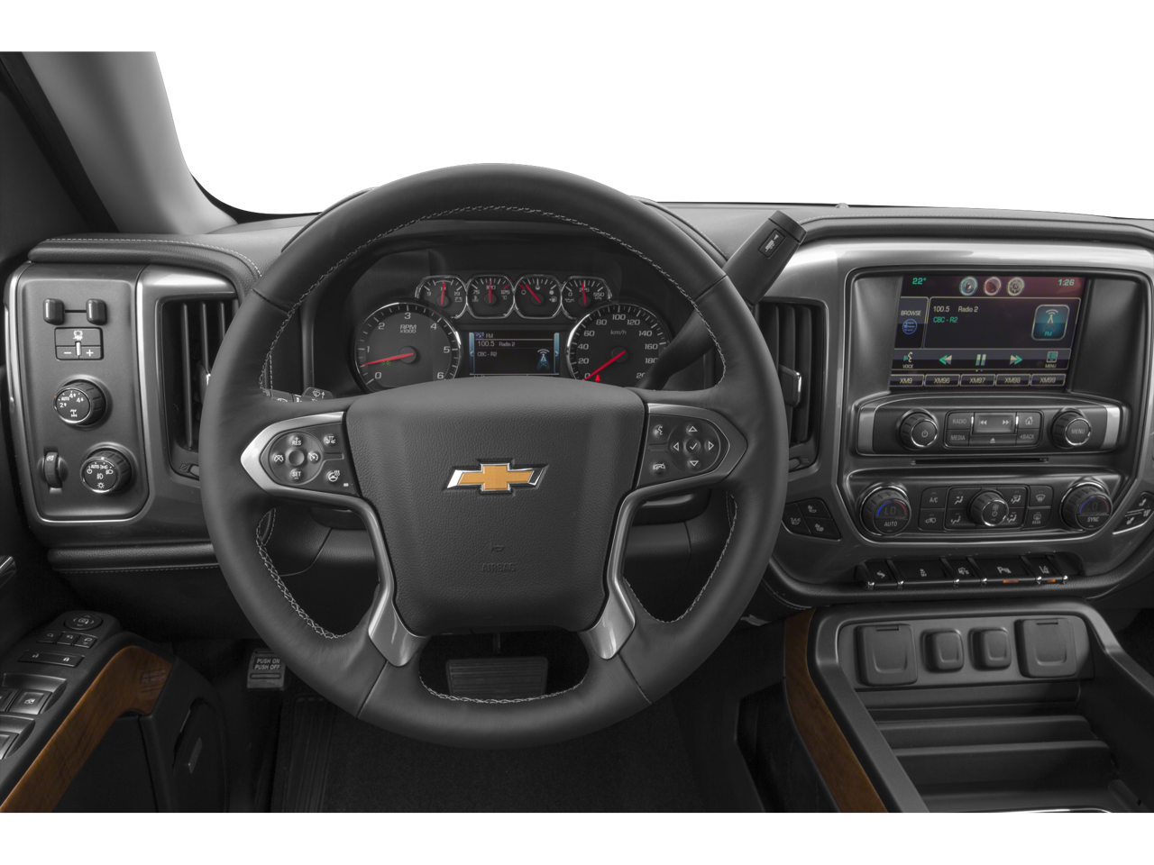 The leather seats in this Chevrolet Silverado are a must for buyers looking for comfort, durability, and style. Protect the Chevrolet Silverado from unwanted accidents with a cutting edge backup camera system. This Chevrolet Silverado offers Automatic Climate Control for personalized comfort. Never get into a cold vehicle again with the remote start feature on this model. You'll never again be lost in a crowded city or a country region with the navigation system on this 1/2 ton pickup. Engulf yourself with the crystal clear sound of a BOSE sound system in this vehicle. The rear parking assist technology on this vehicle will put you at ease when reversing. The system alerts you as you get closer to an obstruction. This Chevrolet Silverado features steering wheel audio controls. This 1/2 ton pickup's Lane Departure Warning helps keep you in your lane. This Chevrolet Silverado features a hands-free Bluetooth® phone system.