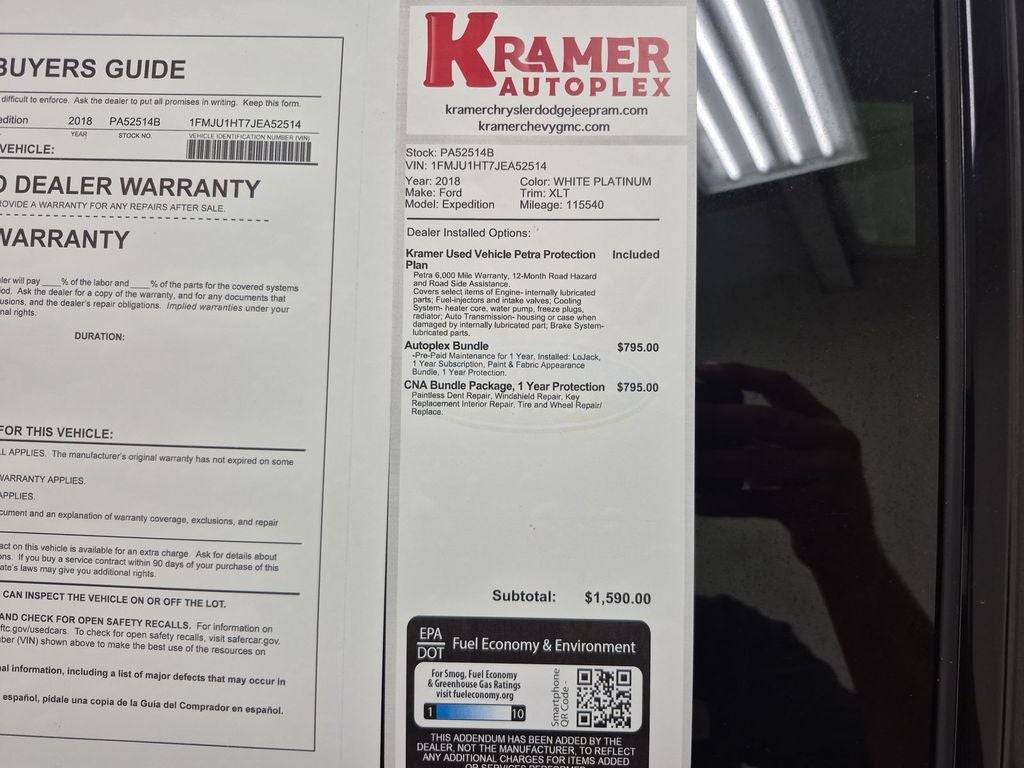 with XM/Sirus Satellite Radio you are no longer restricted by poor quality local radio stations while driving this 1/2 ton suv. Anywhere on the planet, you will have hundreds of digital stations to choose from. The installed navigation system will keep you on the right path. This 2018 Ford Expedition is pure luxury with a heated steering wheel. This unit offers Automatic Climate Control for personalized comfort. Bluetooth® technology is built into this model, keeping your hands on the steering wheel and your focus on the road. Protect this 1/2 ton suv from unwanted accidents with a cutting edge backup camera system. The leather seats in this vehicle are a must for buyers looking for comfort, durability, and style. Start the Ford Expedition from inside with remote start. Good News! This certified CARFAX 1-owner vehicle has only had one owner before you. The state of the art park assist system will guide you easily into any spot.