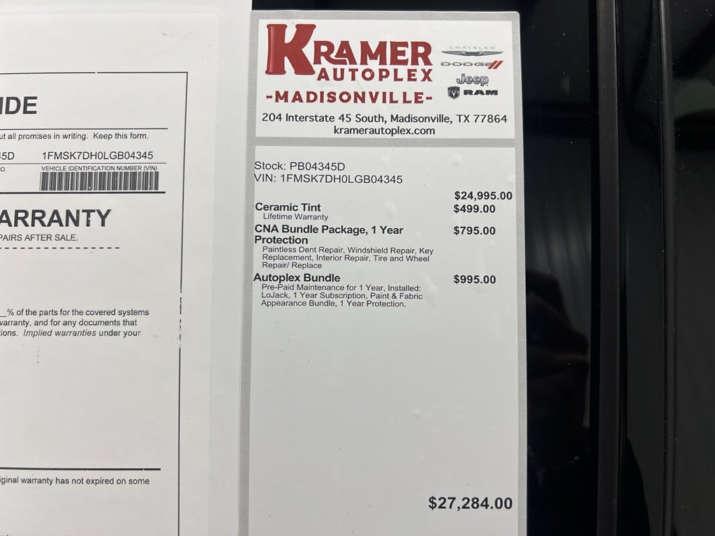 Equipment Group 202A: 3.58 Non-Limited-slip Rear Axle Ratio; ActiveX Captain's Chairs; 10-Speed Automatic Transmission with SelectShift; 2.3L EcoBoost I-4 Engine; TBD GVWR; AM/FM Stereo; LED Fog Lamps; Remote Start System. 20" Premium Painted Aluminum Wheels. Rapid Red Metallic TC. **Equipment listed is based on original vehicle build and subject to change. Please confirm the accuracy of the included equipment by calling the dealer prior to purchase.**