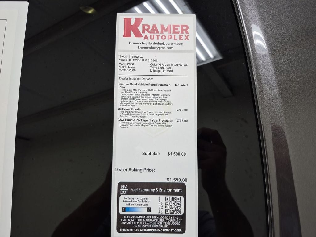 2020 Ram 2500 Lone Star 4WD — 6.7L Diesel, Best Price in Livingston TX Looking for a powerful, dependable workhorse in Livingston TX? This 2020 Ram 2500 Lone Star in 4WD with the legendary 6-cylinder, 6.7L diesel engine delivers exceptional towing, payload capacity, and long-haul efficiency. Built for tough jobs and comfortable daily driving, this Ram 2500 combines rugged capability with modern tech and convenience. Key features include Android Auto and Apple CarPlay for seamless smartphone integration, Hands Free Bluetooth® for safe calling and media control, Remote Start for quick cabin comfort, and a Back-Up Camera to simplify hitching and parking. The Lone Star trim adds durable interior materials and practical amenities designed for durability and comfort on the jobsite or on the road. This pre-owned Ram 2500 has been inspected and maintained to provide reliable performance and value. Whether you need heavy-duty towing for a trailer or a durable truck for daily tasks, this diesel Ram offers unmatched torque and fuel efficiency in its class. Located in Livingston TX, this 2020 Ram 2500 Lone Star is priced to sell and offers the best price in the area for comparable models. Schedule a test drive today and experience the diesel power and capability of this rugged Ram 2500.