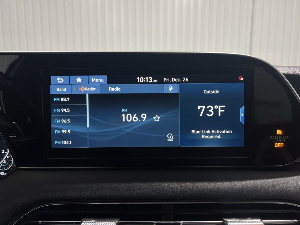 - Radio: AM/FM/MP3 Premium Audio System -inc: 630-Watts, 12-speaker harman/kardon premium audio system, 10.25" color touchscreen, onboard navigation w/traffic flow including incident data via HD Radio (HERE), QuantumLogic surround, Clari-Fi music restoration technology, Android Auto, Apple CarPlay, HD Radio, SiriusXM radio, driver-talk in-car intercom, rear seat quiet mode, multiple device connection, USB and auxiliary input jacks, wireless device charging, Bluetooth® hands-free w/wireless audio streaming, Blue Link connected car system and steering wheel audio controls