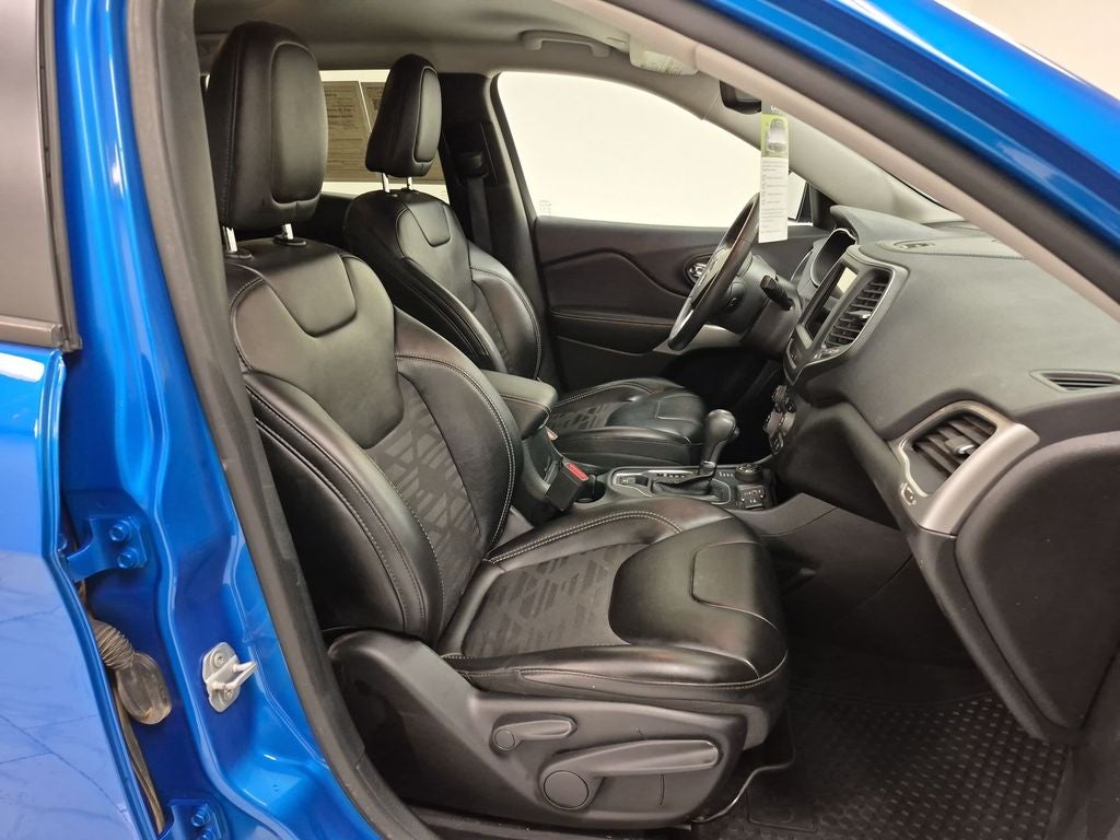 Quick Order Package 26S Cherokee X: Heated Front Seats; Silver Anodized Interior Accents; Cherokee X Hood and Liftgate Decal; Light Tungsten Interior Accents; Cherokee X; Windshield Wiper De-Icer; Gloss Black Exterior Accents; Cherokee X Fascia; Front LED Fog Lamps; Full Size Spare Tire; Heated Steering Wheel; Off Road Suspension; Gloss Black Grille Surrounds; 17" X 7.5" Black Painted Aluminum Wheels; Cloth/premium Vinyl Seats with Pixel Play; Remote Start System; Steering Wheel Mounted Audio Controls; Gloss Black Badges; Leather Wrapped Shift Knob; Cherokee X Door Decal; Matte Black Rear Tow Hook; P245/65R17 OWL All Terrain Tires; Offroad Sill Cladding; Power Adjust 8-Way Driver Seat; Off Road Wheel Flares; Premium-Wrapped Steering Wheel; All-Season Floor Mats; Sliding Sun Visors with Illuminated Mirrors; Power Driver Lumbar Adjust. Hydro Blue Pearlcoat. **Equipment listed is based on original vehicle build and subject to change. Please confirm the accuracy of the included equipment by calling the dealer prior to purchase.**