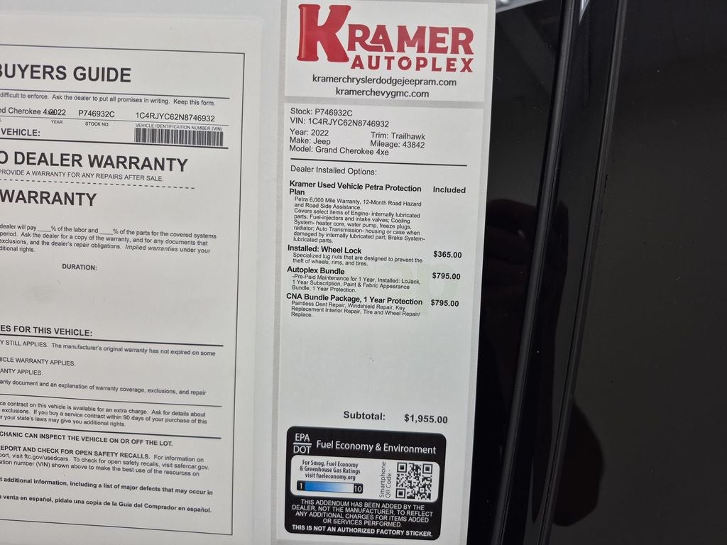 Bluetooth® technology is built into this unit, keeping your hands on the steering wheel and your focus on the road. Never get into a cold vehicle again with the remote start feature on the vehicle. The vehicle comes equipped with Android Auto for seamless smartphone integration on the road. This model's Forward Collision Warning feature alerts drivers to potential front-end collisions. An off-road package is equipped on this mid-size suv. See what's behind you with the back up camera on the vehicle. You'll never again be lost in a crowded city or a country region with the navigation system on this 2022 Jeep Grand Cherokee 4xe . This mid-size suv has automated speed control that adjusts to maintain a safe following distance, enhancing highway driving convenience. The leather seats in this Jeep Grand Cherokee 4xe are a must for buyers looking for comfort, durability, and style. This vehicle offers Apple CarPlay for seamless connectivity.