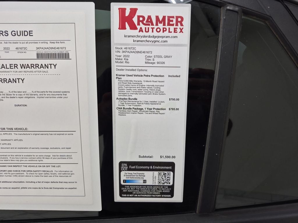 Looking for an affordable, reliable compact that's perfect for city driving and weekend getaways? This 2022 Kia Rio S in Livingston, TX is the smart choice. Powered by a fuel-efficient 4-cylinder 1.6L gasoline engine with front-wheel drive, this Kia Rio delivers a smooth ride, excellent gas mileage, and confident handling — ideal for commuters, students, or anyone seeking value without sacrificing comfort. Inside, the well-appointed cabin features Apple CarPlay for seamless smartphone integration and Hands Free Bluetooth® for effortless, safe calling and audio streaming. The large Back-Up Camera makes parking and reverse maneuvers simple and secure. Practical features and intuitive controls keep every drive comfortable and convenient. This vehicle comes with a CARFAX Clean Report and is a CARFAX 1-Owner, giving you added peace of mind about its history and maintenance. Meticulously maintained and ready to drive, this Kia Rio S represents the best price in the area — exceptional value compared to similar models. Located in Livingston, TX, this 2022 Kia Rio S blends economy, modern technology, and a reliable driving experience into a compact package. If you want a dependable, feature-packed vehicle at a standout price, this Kia Rio is ready to impress. Contact us to schedule a test drive and see why this is the smart pick for budget-conscious buyers who want quality and savings.