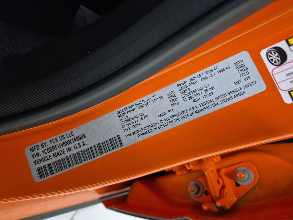 TRX Ignition Edition: Adaptive Cruise Control with Stop and Go; Leather/carbon Flat-Bottom Steering Wheel; MOPAR 4 Adjustable Cargo Tie-Down Hooks; Pedestrian Emergency Braking; MOPAR TRX Ignition Edition Graphics; MOPAR Spray in Bedliner; Special Edition Console Badge; MOPAR Deployable Bed Step; Real Carbon Fiber Interior Accents; 18" X 9" Machined Face Black Wheels; Dual-Pane Panoramic Sunroof; Lane Keep Assist; Orange Accent Stitching. Quick Order Package 29Y. TRX Level 2 Equipment Group: Full Length Premium Upgraded Floor Console; Rear Window Defroster; Surround View Camera System; Blind Spot and Cross Path Detection; Rain Sensitive Windshield Wipers; LED CHMSL Lamp; ParkSense Front/rear Park Assist with Stop; Power Adjustable Pedals with Memory; Pick-Up Box Lighting; Body Color Door Handles; MOPAR Bright Pedal Kit; IP LED Ambient Light Pipe; Rear Underseat Compartment Storage; Trailer Brake Control; Leather Trimmed Bucket Seats; Head Up Display; Heated Second Row Seats; Heated Steering Wheel; Leather/suede Flat-Bottom Steering Wheel; Wireless Charging Pad; Driver/passenger Wrapped Assist Handles; Ventilated Rear Seats; Rear 60/40 Folding Split Recline Seat; Ventilated Front Seats; Remote Tailgate Release; Harman/kardon 19 Speaker Premium Sound; Premium Wrapped Instrument Panel Bezel; 2-Door Passive Entry. Front Door Locks; Universal Garage Door Opener; Exterior Mirrors with Memory; Luxury Front Door Trim Panel; Driver Seat Memory; Front Door Accent Lighting; Power 8-Way Driver and Passenger Seats; Radio/driver Seat/mirrors/pedals Memory; Digital Rearview Mirror; Rear Door Accent Lighting; Sun Visors with Illuminated Vanity Mirrors. Dual-Pane Panoramic Sunroof. Harman/kardon 19 Speaker Premium Sound. Blind Spot and Cross Path Detection. Surround View Camera System. ParkSense Front/rear Park Assist with Stop. Remote Start System. **Equipment listed is based on original vehicle build and subject to change. Please confirm the accuracy of the included equipment by calling the dealer prior to purchase.**
