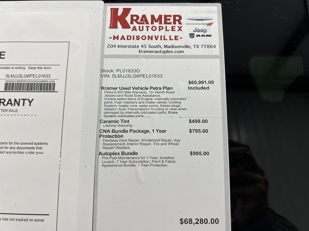Equipment Group 201A: 22" Bright Machined Aluminum Wheels; Premium Leather Auto Heated/ventilated Perfect Position Seats; 3.73 Axle Ratio; 10-Speed Automatic Transmission with SelectShift; 3.5L Twin-Turbocharged V6 Engine; 285/45R22 AS BSW Tires; 7. 800 lbs GVWR. Luxury Package: Perfect Position Seats (30-Way) with Active Motion; Illuminated First and Second Row Seat Belts; Lincoln Lit Star in Grille; Revel Ultima 3D Audio System with 28 Speakers. Heavy-Duty Trailer Tow Package: Tiered Cargo Area Management System; 26mm Radiator; Trailer Brake Controller; Trailer Sway Control; Pro-Trailer Backup Assist 2.0; Class IV with 4-Pin and 7-Pin Connectors; Electronic Traction Assist; 2-Speed Transfer Case; Front Tow Hooks; Smart Trailer Tow. All-Weather Floor Liners with Carpet Floor Mats. **Equipment listed is based on original vehicle build and subject to change. Please confirm the accuracy of the included equipment by calling the dealer prior to purchase.**