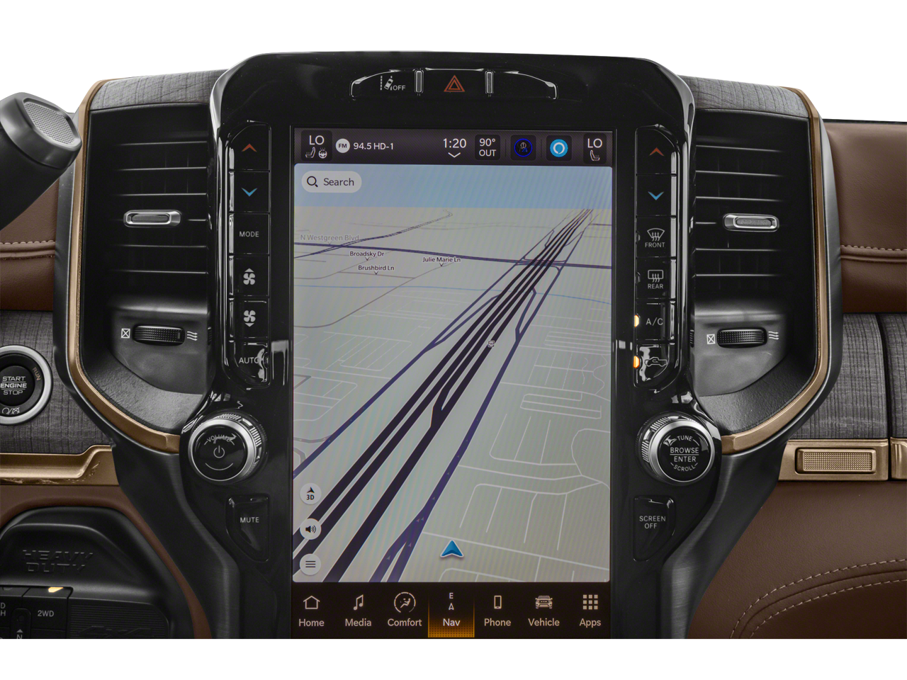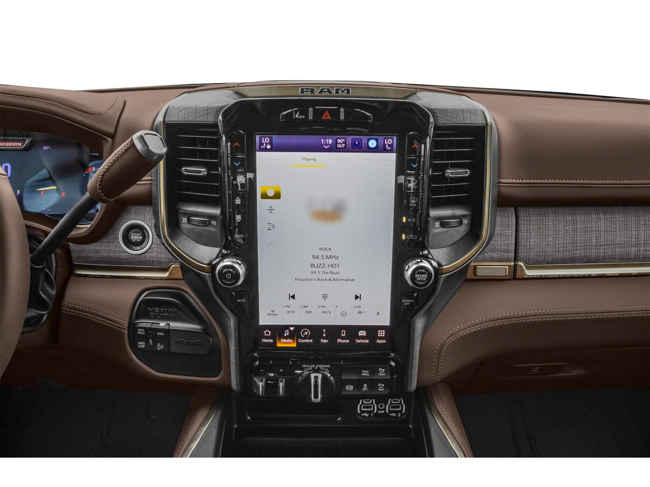 Quick Order Package 2HK Longhorn. Longhorn Level 1 Equipment Group: Google Android Auto; SiriusXM Radio Service; Blind Spot and Cross Path Detection; For Details. Visit DriveUconnect.com; For More Info. Call 800-643-2112; Integrated Voice Command with Bluetooth®; LED Bed Lighting; Connectivity - US/Canada; Power Deployable Running Boards; 12" Touchscreen Display; GPS Navigation; 4G LTE Wi-Fi Hot Spot; GPS Antenna Input; SiriusXM with 360L; Global Telematics Box Module; Connected Travel and Traffic Services; Alexa Built-In; Apple CarPlay; Off-Road Information Pages; Selectable Tire Fill Alert; Trailer Tow Pages; Disassociated Touchscreen Display; HD Radio; Ramcharger Wireless Charging Pad; Uconnect 5 Navigation with 12.0" Display Radio; MOPAR Spray in Bedliner; 17 Speaker Harman/kardon Premium Sound. Safety Group: Blind Spot and Cross Path Detection; Adaptive Cruise Control with Stop; Adaptive Steering System; Full Speed Forward Collision Warning Plus; Lane Keep Assist. Towing Technology Group: Center Stop Lamp with Cargo View Camera; Surround View Camera System; Trailer Reverse Guidance. Protection Group: Transfer Case Skid Plate Shield. 20" X 8.0" Diamond Cut Face Aluminum Wheels. Power Sunroof. Blind Spot and Cross Path Detection. Anti-Spin Differential Rear Axle. Center Stop Lamp with Cargo View Camera. Adaptive Steering System. Delmonico Red Pearlcoat. Instrument Panel Mounted Auxiliary Switches. Clearance Lamps. **Equipment listed is based on original vehicle build and subject to change. Please confirm the accuracy of the included equipment by calling the dealer prior to purchase.**
