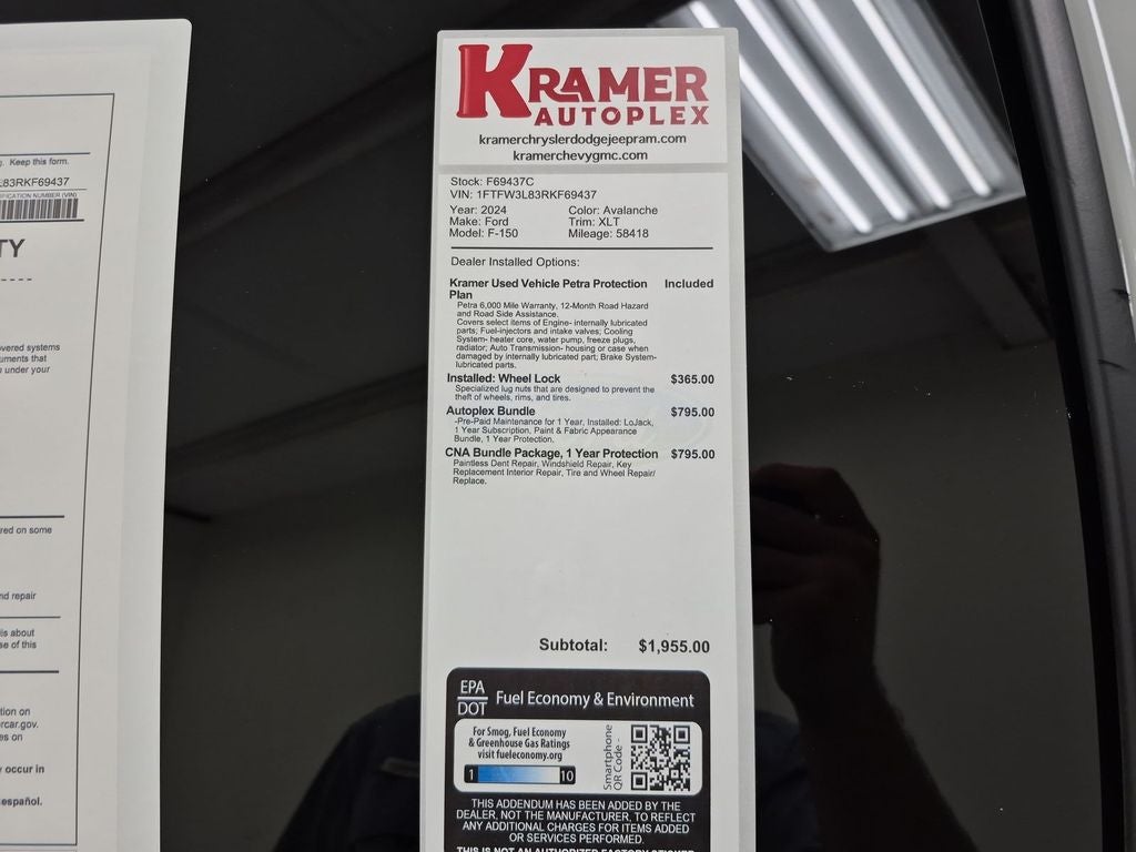 XLT Black Appearance Package: Black Grille; Gray Box Side Decal; Black Exterior Badging; 6" Black Running Boards; Unique Sport Cloth 40/console/40 Front-Seats; 18" Gloss Black Wheels; Body-Color Front and Rear Bumpers; Dark Interior Appliques; Floor Shifter. FX4 Off-Road Package: Tray Style Floor Liner; Off-Road Tuned Front Shock Absorbers; Skid Plates; Monotube Rear Shocks; Rock Crawl Mode; 4x4 FX4 Off-Road Bodyside Decal; Hill Descent Control. Bed Utility Package: 4 Pickup Box Tie-Down Plates; Tailgate Step with Tailgate Work Surface; LED Box Lighting. Equipment Group 302A Mid: Electronic 10-Speed Automatic Transmission; Adaptive Cruise Control with Stop and Go; Intelligent Access with Push Button Start; AM/FM SiriusXM with 360L Radio; 400W Cab and Bed Outlets; Ford BlueCruise Equipped (90-Day Trial); Power-Sliding Rear Window; 275/65R18 BSW A/T Tires; Remote Start System with Remote Tailgate Release; Heated Front Seats; Power Glass Heated Sideview Mirrors. Mobile Office Package: Wireless Charging; Partitioned Lockable Rear Storage; Console Worksurface. Tow/haul Package: Integrated Trailer Brake Controller. Max Tow Electronic Locking with 3.55 Axle Ratio. Integrated Trailer Brake Controller. Skid Plates. First Aid Kit with Ford Logo. **Equipment listed is based on original vehicle build and subject to change. Please confirm the accuracy of the included equipment by calling the dealer prior to purchase.**