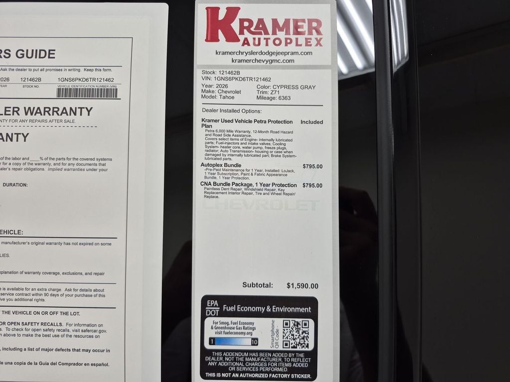 Experience the perfect combination of power, comfort, and capability with this 2026 Chevrolet Tahoe Z71 located in Livingston, TX. With just 6,363 miles, this low-mileage Z71 is ready to deliver serious performance thanks to its robust V8 5.3L gasoline engine and reliable 4WD system—ideal for towing, off-road adventures, or daily driving with confidence. You'll enjoy modern convenience and connectivity with Apple CarPlay and Android Auto seamlessly integrated into the cabin, while the premium BOSE stereo elevates every drive with crisp, immersive sound. Safety and driver assistance are prioritized with Adaptive Cruise Control for relaxed highway travel, and a CARFAX Clean Report verifies the vehicle's excellent history, giving you additional peace of mind. The Z71 trim adds rugged styling and capability enhancements that make this Chevrolet Tahoe stand out on and off the road while delivering a spacious, comfortable interior for families and weekend warriors alike. Located in Livingston, TX, this Chevrolet Tahoe Z71 is competitively priced and represents the best price available—an exceptional value for a late-model, low-mileage SUV with a powerful V8 and 4WD. Don't miss your chance to own a well-equipped, clean-title Chevrolet Tahoe with sought-after features like BOSE audio, Apple CarPlay, Android Auto, and Adaptive Cruise Control. Contact us in Livingston, TX to schedule a test drive and secure this outstanding deal today.